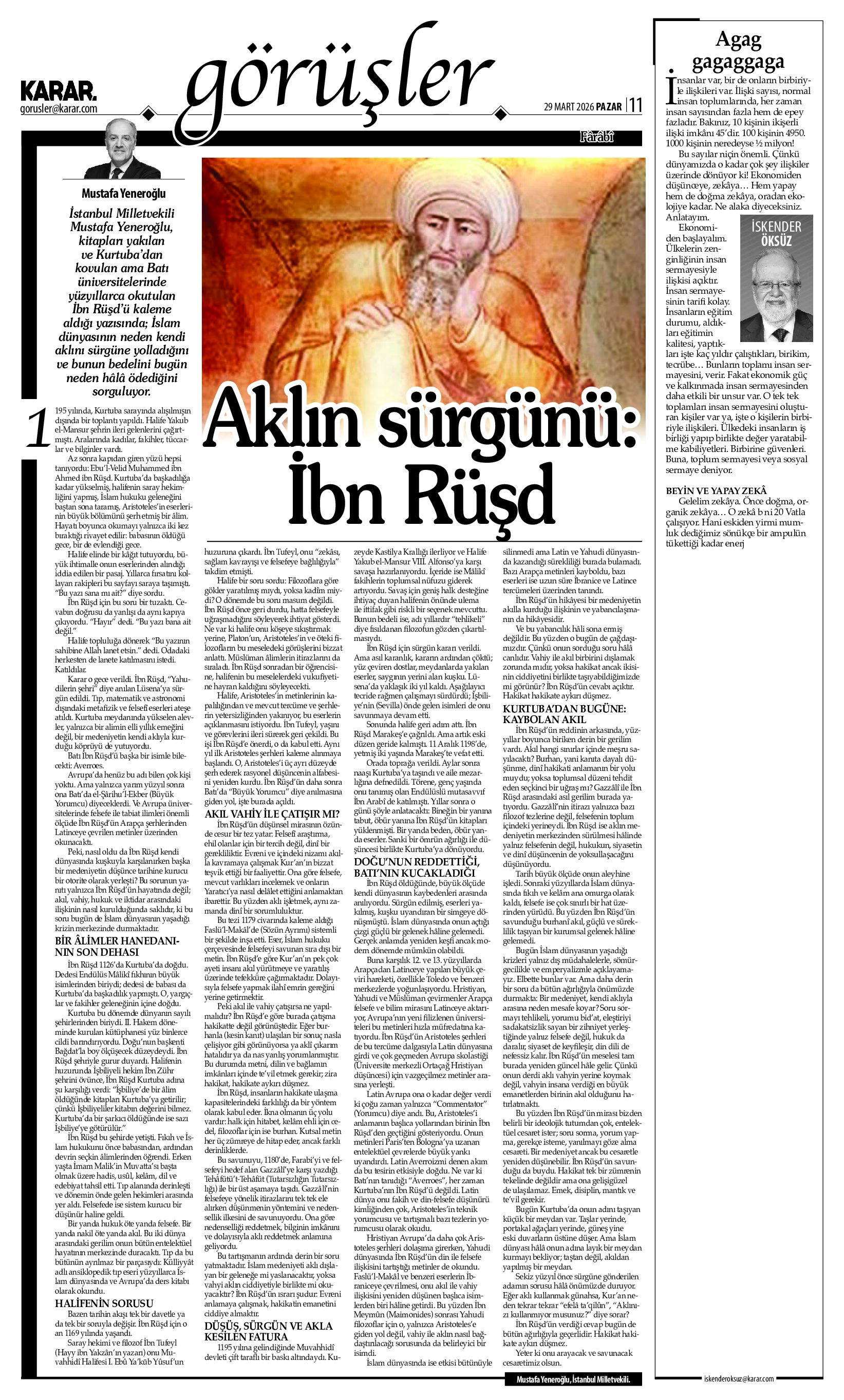 İstanbul Milletvekili Mustafa Yeneroğlu, kitapları yakılan ve Kurtuba’dan kovulan ama Batı üniversitelerinde yüzyıllarca okutulan İbn Rüşd’ü kaleme aldığı yazısında; İslam dünyasının neden kendi aklını sürgüne yolladığını ve bunun bedelini bugün neden hâlâ ödediğini sorguluyor.