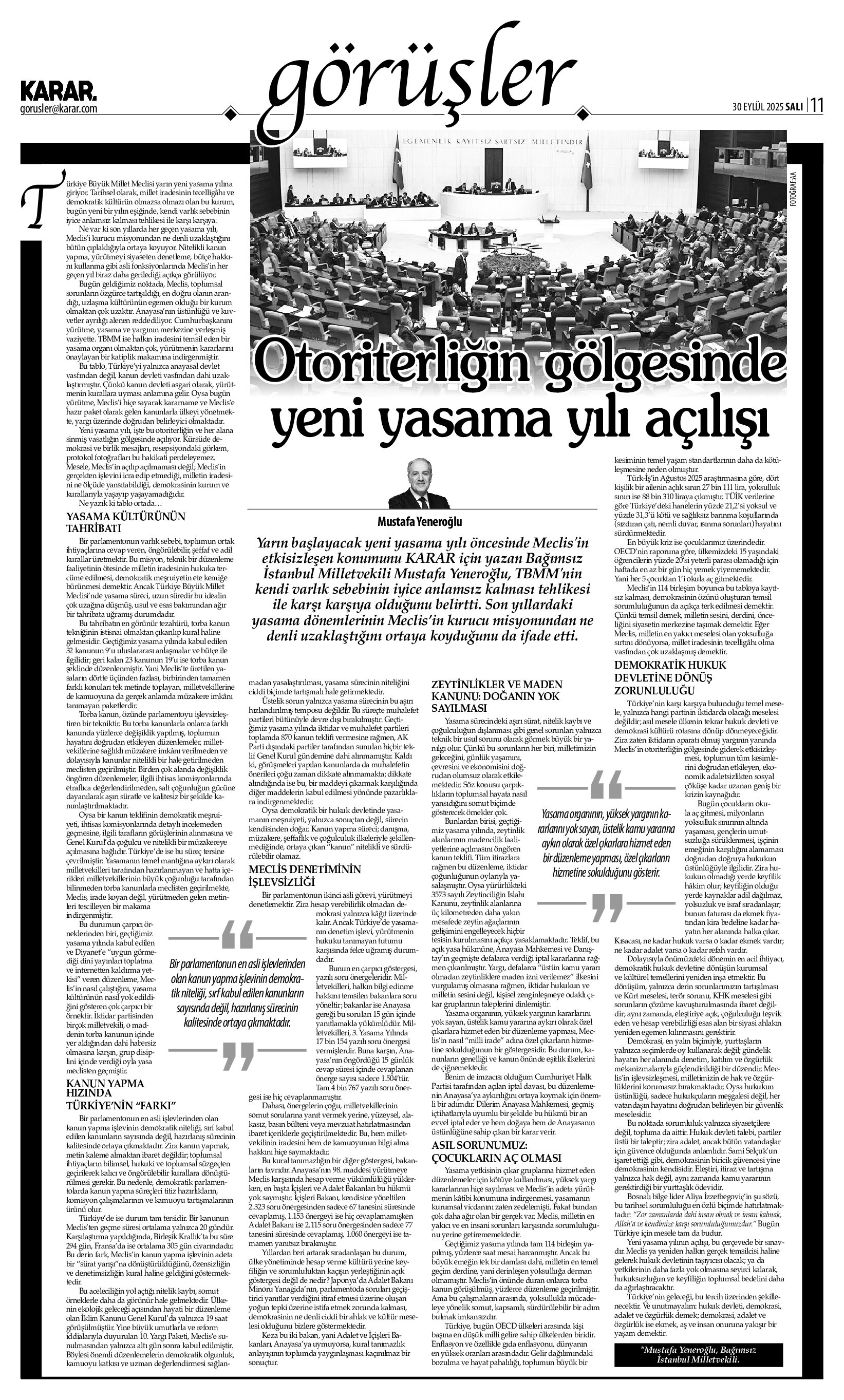 Otoriterliğin Gölgesinde Yeni Yasama Yılı Açılışı [Karar Gazetesi]